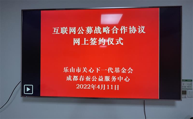 乐山市关心下一代基金会-成都春蚕公益服务中心互联网公益联合劝募合作协议网上签约仪式今天上午十点在关工委四楼会议室举行。